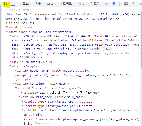 그럼 요소라는탭에서 페이지의 html 내용을 확인 할 수 있는데요.