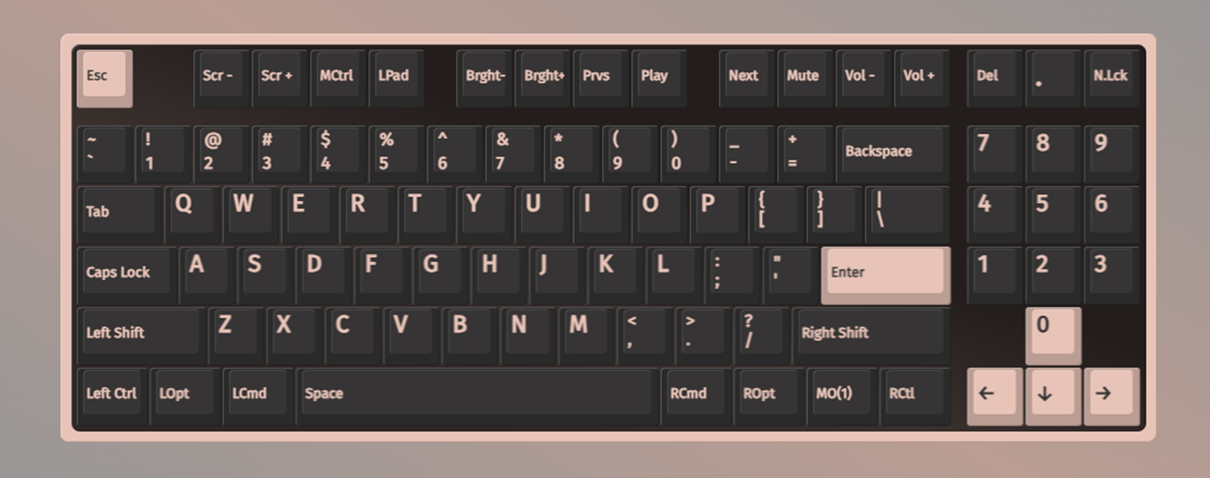 이 키보드는 텐키리스 키보드에서 화살표 위의 펑션키들 대신에 넘버패드를 넣은게 특징입니다.