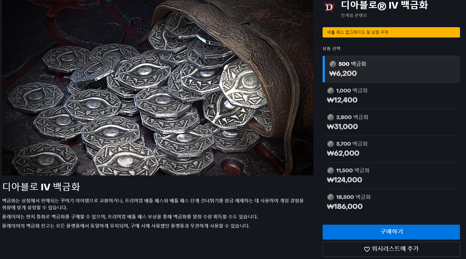 디아블로4 백금화는 게임내 인게임 스킨 또는 배틀패스를 구매하는데 사용이됩니다.